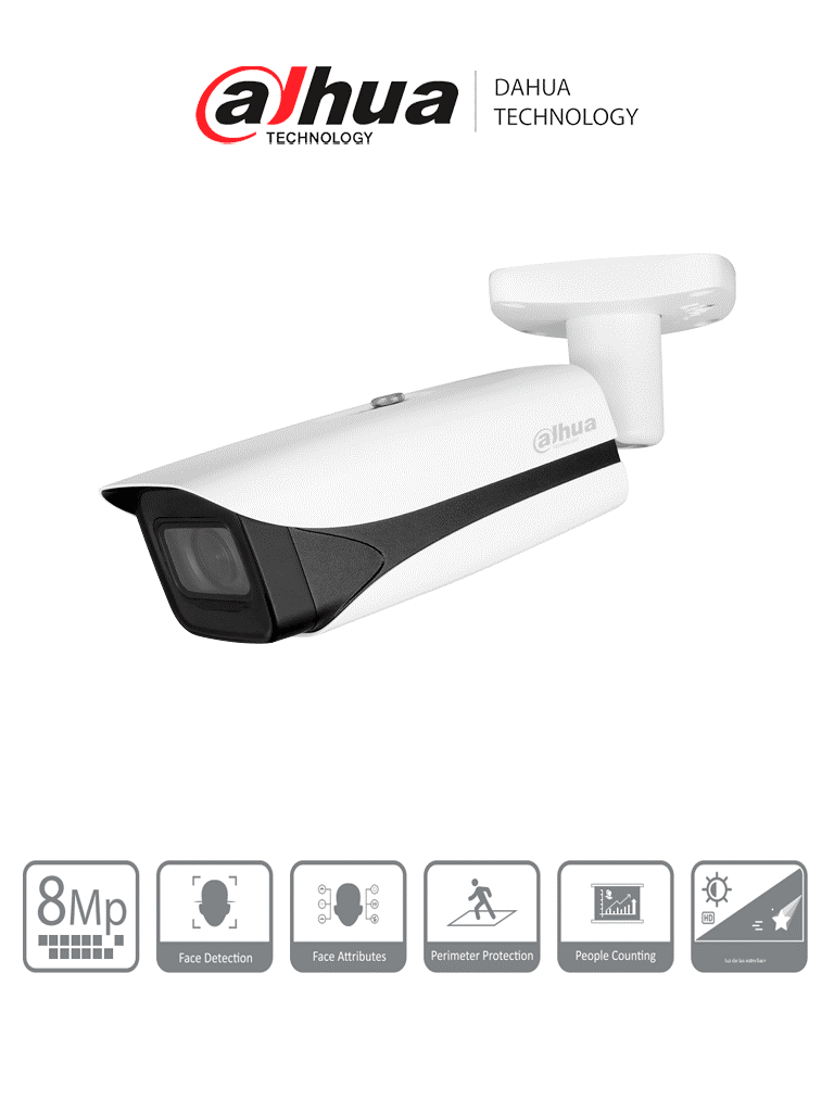 DAHUA DH-IPC-HFW5842E-ZE – Camara IP Bala 4k/ WizMind/ Lente Mot. de 2.7 a 13/ IR de 60 Metros/ SMD 3.0/ Metadatos/ WDR/ Ranura para Micro SD/ ePoE/ P67 /IK10 /SMD 3./ E&A de Alarma y Audio/ Conteo de Personas/ Detección facial.