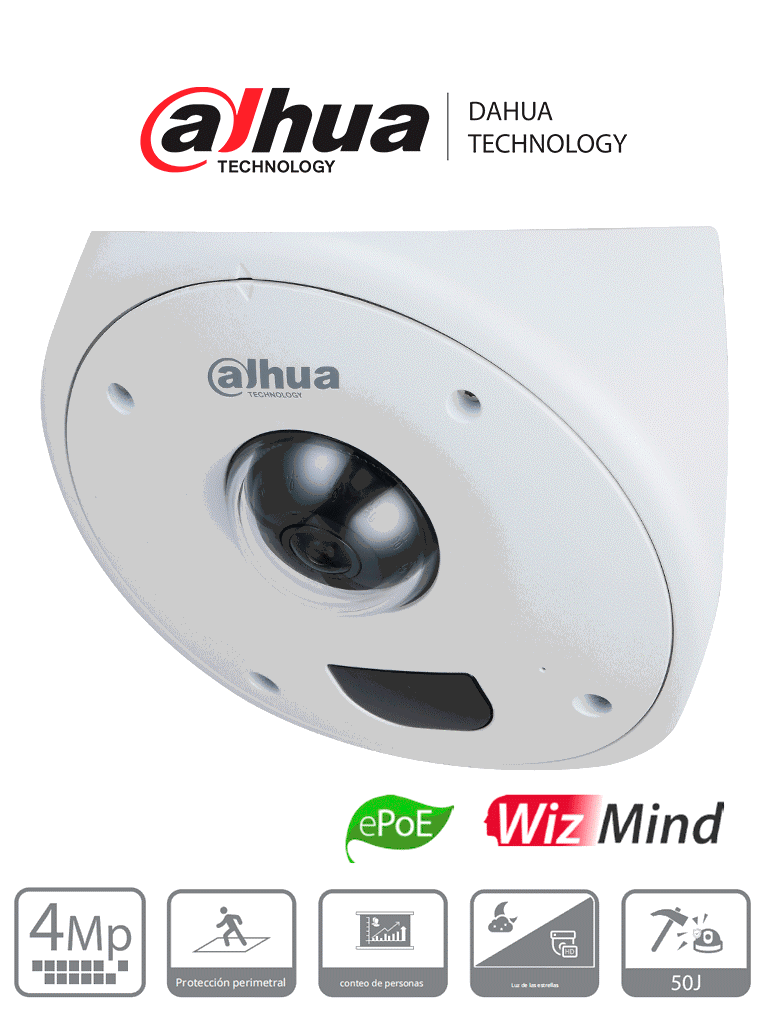 DAHUA IPC-HCBW8442 – Domo IP de 4 MP para Montaje en Esquinas/ Lente de 2.5 mm/ 135°/ IR de 10 Metros/ Antivandálico/ Protección Perimetral/ Conteo de Personas/ Mapa de Calor/ IP67 e IK10+ (50J)/ PoE/ E&S de Alarma/ E&S de Audio